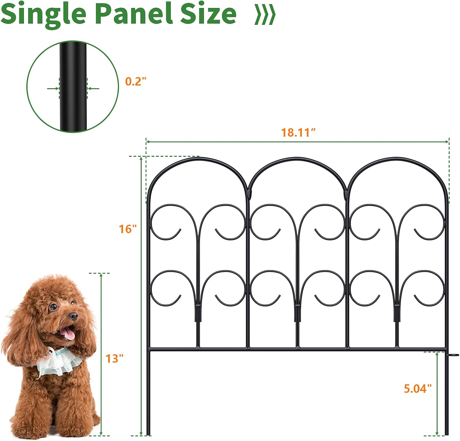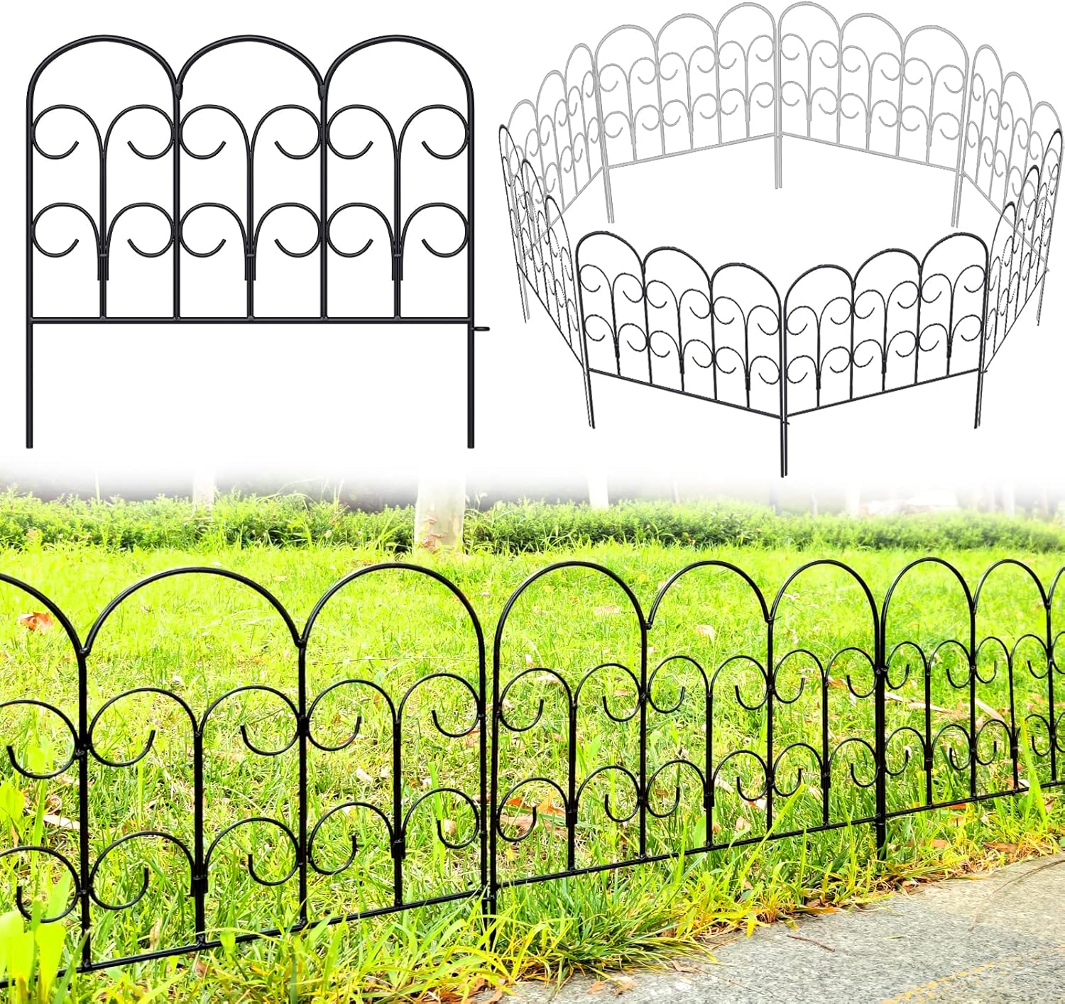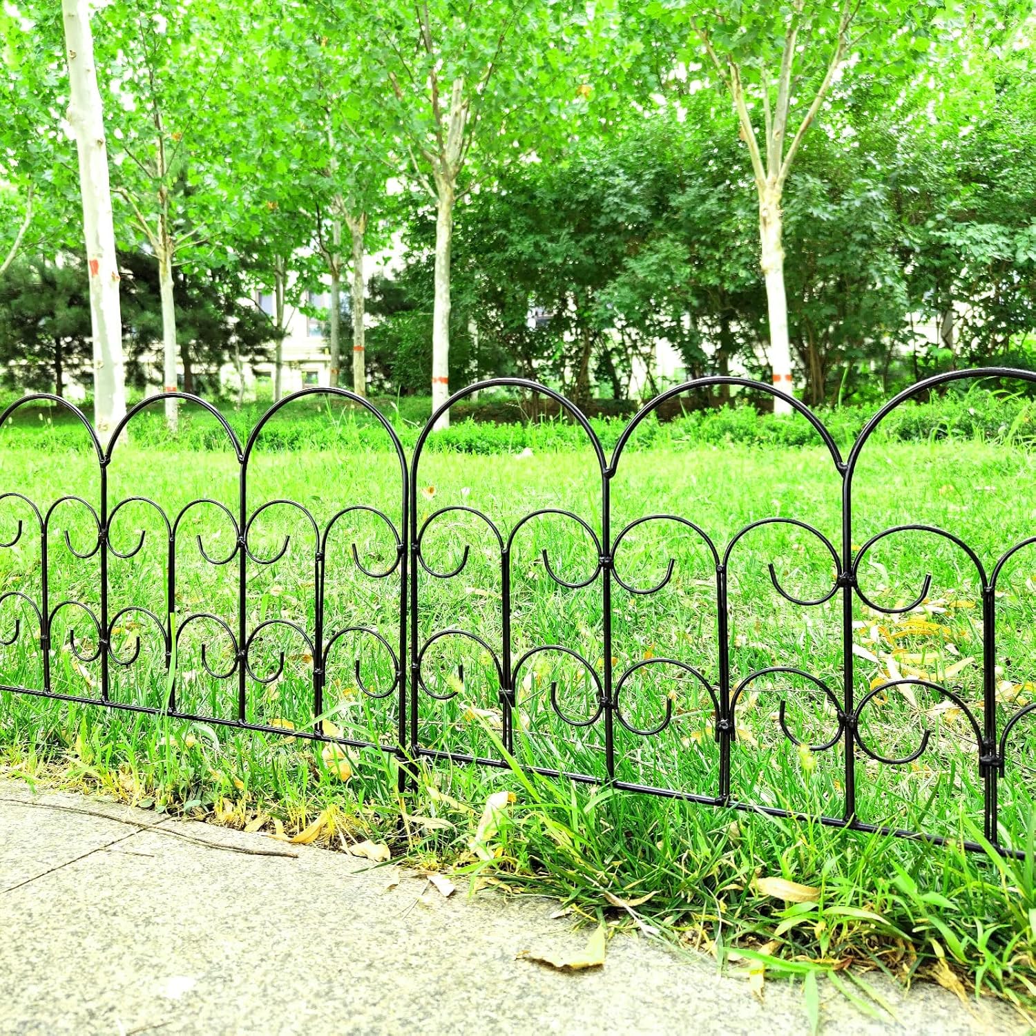 Decorative Metal Garden Fence 40cm H x 47cm W (5 Panels, Total Length 2.35m) Fence Panels, Rustproof Wrought Iron Edging Flower Bed, Animal Barrier Border