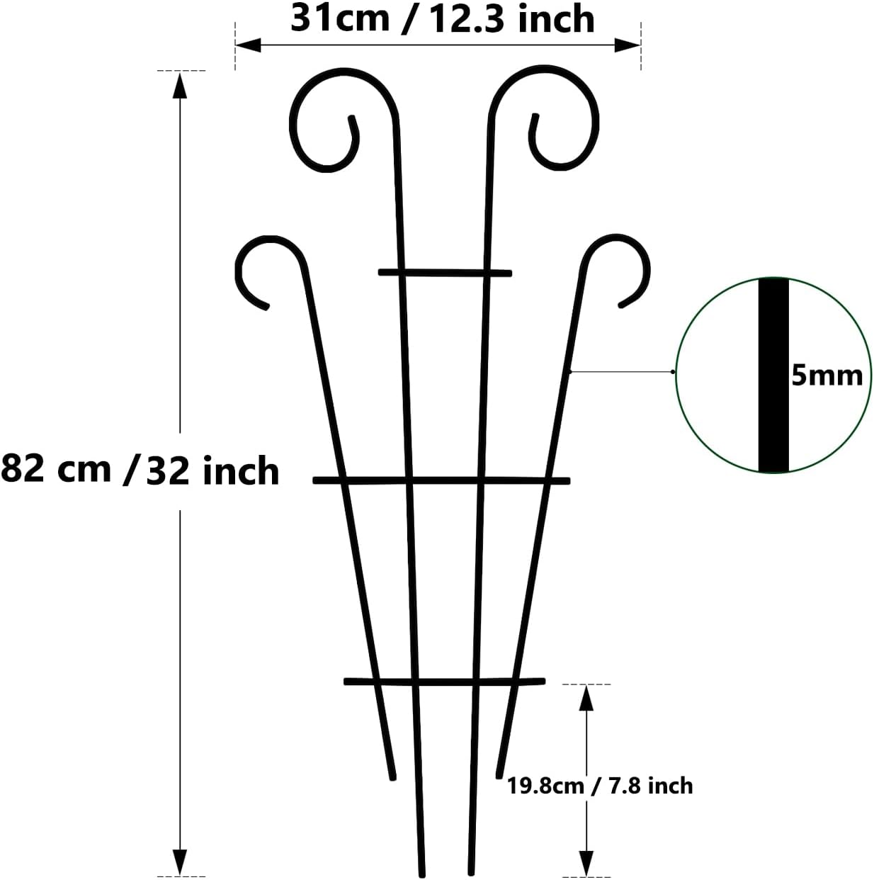 4 Pack Ivy - Wave Design, Black Indoor/Outdoor Metal Plant Trellis, 60 cm/23.6 in - Garden Trellis for Climbing Plants & Potted Houseplants & Flowers & Vines, for Patio, Yard