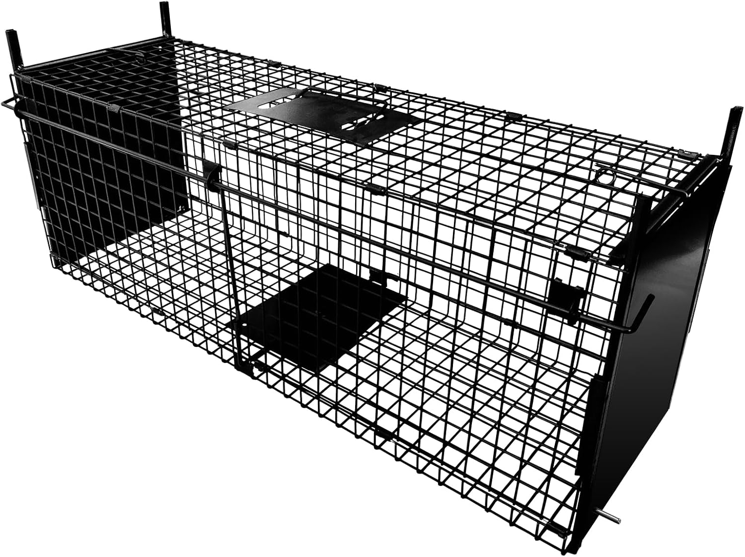 This double-door animal trap comes pre-assembled and folded flat for delivery. No complicated setup is required – simply unfold it and follow the instructions to get it ready in minutes. We also provide clear installation videos, making it easy even for first-time users.Strong & Reliable Construction: