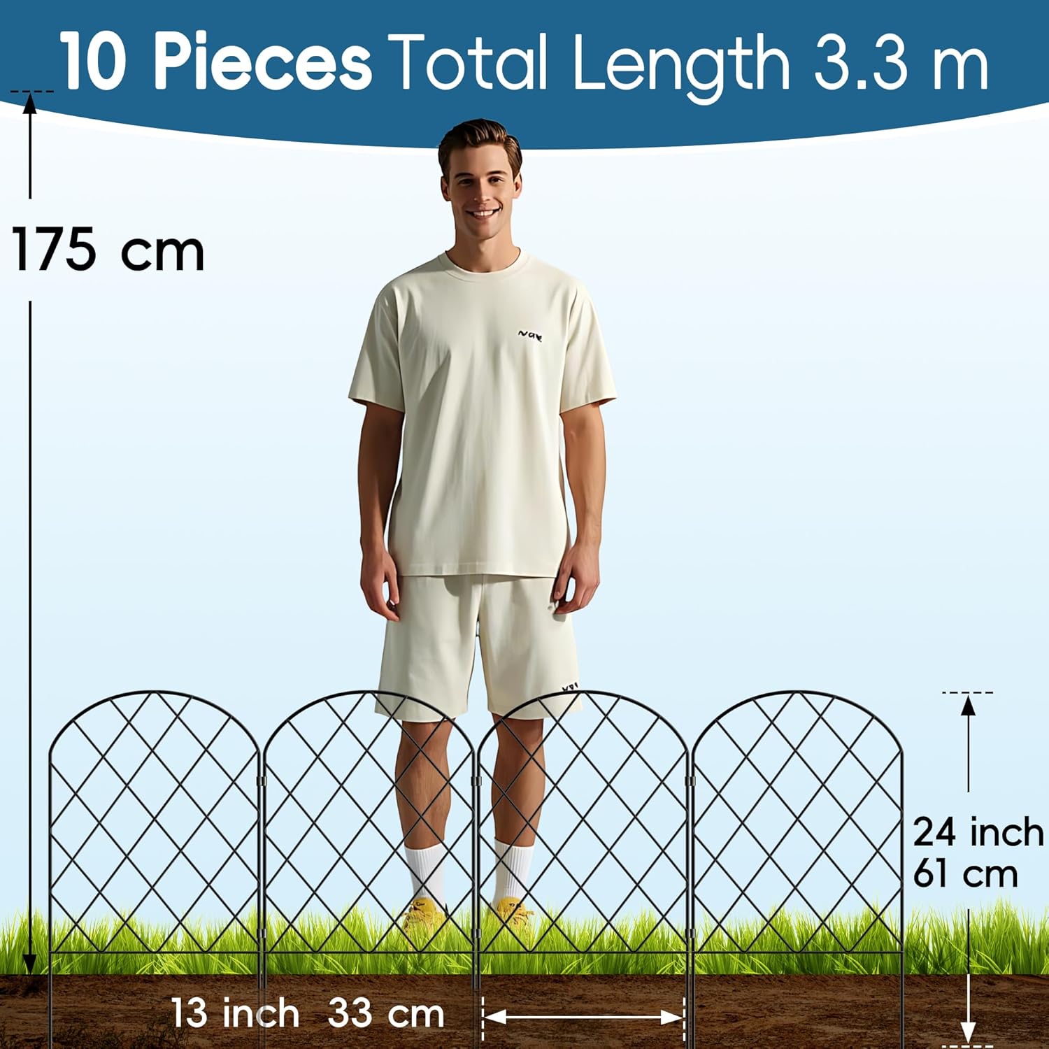 Decorative Garden Fence 61cm (H) x 33cm (W) (10 Panels, Total Length 3.3m) Border Fence Dog Fence for Flower Bed, Yard, Animal Barrier